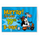 "Hurray! het is je 19e B-dag!" leugenachtige scooterkoe op leeftijdspecifieke verjaardagsdatum - wenskaart
