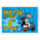 "Hurray! het is je zesde B-dag!" leugenachtige scooterkoe op leeftijdspecifieke verjaardagsdatum - wenskaart