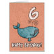 Fijne verjaardagswalvis - 6 jaar oude Cute humpback walvis op een leeftijdspecifieke verjaardagsdag-wenskaart. Binnenkant tekst: "Hoop dat je een walvis van een tijd hebt!"