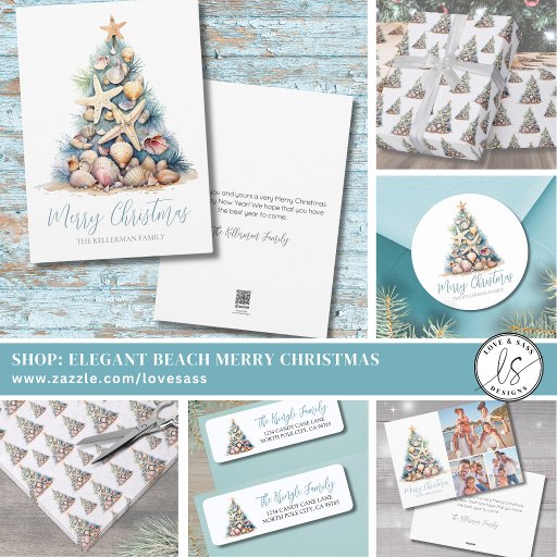 Elegant Coastal Shell Beach Merry Christmas TreeOntworpen door JJ Marie