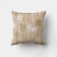 Beach decorative gooit kussen in groen en roze kleine faux weve patroonachtergrond met groen en wit palmstructuurontwerp. Dit stroperpatroon wordt aan beide zijden van de kussen herhaald.