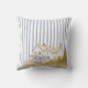 Introductie van ons Beach House Blue Coastal Chic Blue Stripes Sierkussen. Met waterverf illustratie kusthuisje met marineblauwe stroken als achtergrond. Geschikt voor Verhuur vakantie strandhuis of kusthuisje.