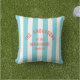 Beach House Custom Naam Blue Cabana Stripe Buitenkussen