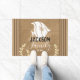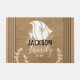 Rustic Burlap achtergrondontwerp. Tropische visstempel is stevig. De familienaam van de douane in vette sans serif doopvont en chic manuscriptfamilie typografie. Alle tekst kan worden aangepast. Prachtig ontwerp voor strandhuis, vakantiehuis, boot of nautisch-thematisch thuisdepot.