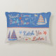 Deze grappige, originele rechthoekige kussens zijn perfect voor je strandhuis of voor het huis van een dienstmeisje. Het ontwerp show een griezelige tekening van een geeuwige en ketchzeilboot op een blauw en beige achtergrond van de marine die lijkt op golven van de lichte oceaan. De tekst luidt: "Kom nu terug! / Ketch Ya later!" Het is omringd door zeester. Deze kussen zijn perfect voor elke zeeman en elke fan van nautisch design en schattige puns.