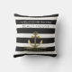 Moderne, zwarte en witte strepen, monogrammed, zeescheepvaart buiten de loods voor het strandhuis of het meerhuis - Preppy, brede zwarte en witte strepen achtergrond. Leest 'Welkom in het Kiehuis' in het overeenkomende zwarte en witte, moderne lettertype. Hieronder zie je een nepmetallisch goudkleurig nautisch anker met de familienaam monogrammed in goud. Hetzelfde aan beide zijden. Klassiek nautisch deken buitenshuis voor een strandhuis, zomervakantiehuis, meerstal, huisboot of hut in de bossen. Classy, monogrammed home warming gift, een cadeautje voor je pensioen, of een cadeau voor je gezin of voor een nieuwe bruiloft. U kunt deze zwarte en witte ankerkussen kopen in verschillende maten en doekopties voor binnenshuis, evenals vele andere coördinerende nautische kussens en decor voor zeelieden. Dit vult moderne zwarte en witte stijlen en stroperige, zeilorthema's aan. Koop het overeenkomende portier!