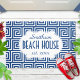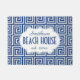 Deze bovengrondse nautische doormat heeft een Art Deco-vibe in blauw en wit marineschip. Het patroon is een geometrische Griekse sleutel - met een witte krommende banner in het centrum voor u om uw gepersonaliseerde tekst toe te voegen. Deze aangepaste kusttram is perfect voor je stijlvolle strandhuisdeuropening. Alle drie de tekstgebieden kunnen worden veranderd, niettemin, in hoesje wilt u "Beekhuis"in "zomerhuis,"het "Huis van het meer"of een andere tekst veranderen u houdt van. Leg een verklaring af zodra je gasten met dit elegante hormoon aankomen.