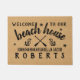 "Welkom bij ons strandhuis" tekst met kanoe-peddels, ankers, zeester en uw familienaam - faux burlap achtergrond met zwarte tekst