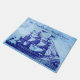 Dit gepersonaliseerde strandhuis heeft een , antiek zeilschip | lang schip met drie masten. Achter de kaart zit een zwakke, noodlijdende kaart uit de oudheid. Het hele hormoon wordt gemaakt in tinten blauw.