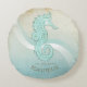 Deze ronde werpt kussen in de zachte kleuren van zee en zand staat u toe om uw eigen naam en tekst gemakkelijk toe te voegen gebruikend de verstrekte sjabloon. Het simpele afbeelding van het zeepaardje op een noodlijdende, waterverf achtergrond wordt benadrukt door een golfaccent in water en wit. Zoek ID623 om te zien coördinerend seuit elementen en extra producten met dit ontwerp.