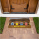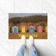 Doormat met foto van kleurrijke strandhutten en blauwe hemel in Saunton Sands, Devon, Engeland.