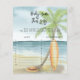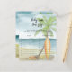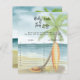 Baby aan boord! Baby shower uitnodiging - ideaal voor een baby shower in de zomer. Strand thema. Waterverf design heeft een oceaan- en strandscène met surfplank, palmboom en pet.