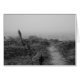 Kleine weg die naar het strand leidt in dikke mist. Zwart-witte fotografie.