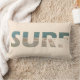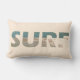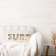 Deze heldere en vrolijke kussens zijn perfect voor een slaapkamer of slaapkamer en zijn voorzien van een blauw en bruin strandontwerp met het woord "SURF" aan de voorzijde.