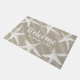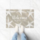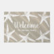 Beachy doormat met witte zeester, witte script "welkome" tekst, zandduinen achtergrond, en de naam van uw familie in wit script!