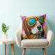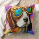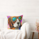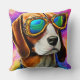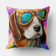 Beagle die zonnebrillen draagt boven kleurrijke regenboogkleuren.