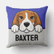 Een gepersonaliseerd Beagle-werpkussen voor hondenliefhebbers, met een schattige Beagle die over een richel gluurt en een aangepast tekstvak waar u de naam van uw hond of een andere tekst kunt typen. Een leuk aanpasbaar cadeau voor elke Beagle hondenmoeder, vader, trainer of hondenliefhebber.