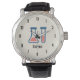 Een horloge met een schattige tekening van een reageerbuis en een bekerglas. Ideaal voor soorten wetenschap.