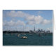Een foto van Auckland, Nieuw-Zeeland. De hemel is blauw en het water is een mooie groene kleur. Je kunt de Sky Tower op afstand zien.