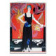Levendige, klastige Franse Kunst Deco met hoge mode.Monogram ontwerp, met een mooie dame met een spiegel in hand en een fantastische fenix-vogelveren, vleugels in zwart wit, rood, aqua blauw, blauwgroen, paarse kleuren.Cool, modern en artistiek design.