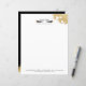 Luxueuze zwarte mascara wimpers met faux gouddusted eyelashes business stationery letterhead. De randen van de kantoorbenodigdheden waren gestoffeerd met faux goudglitter en harten. Pas de bedrijfsnaam en de contactinformatie aan. De achterzijde is voorzien van een zwart geheel met het faux gouden glitterstofaccent, dat in een eenvoudige en elegante lay-out is ontworpen. Alle illustraties zijn originele handgetekende illustraties van de methodologie.