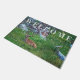 Een foto van een mannelijk hert dat zich in gras bevindt en wilde bloemen die groeien onder een natuurlijke muur van steen in een bos. Deze close-up foto van een mannelijk hert is dezelfde bok op mijn foto: "A Buck Rests at a Cascading River". Afbeelding Copyright© 2018 Kimberly J Tilley.