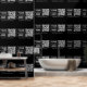 Moderne zwarte minimalistische gepersonaliseerde zakelijke kantoor wallpaper met zakelijke logo, aangepaste tekst en QR-code. Personaliseer om uw eigen ontwerp te creëer.