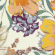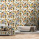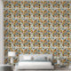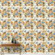 Dit levendige kunstwerk heeft een levendige samenstelling van hommels en ingewikkelde bloemen in volle bloei. De bloemenelementen, weergegeven in rijke tinten sinaasappel, blauw en geel, creëer een kleurrijk wandtapijt dat prachtig contrasteert met de detailillustraties van bijen. De romige achtergrond versterkt de levendigheid van de bloemen en de energieke energie van de zoemende bijen, wat resulteert in een levendig en boeiend patroon dat de harmonie van de natuur viert.