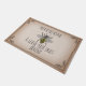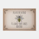"Wees vriendelijk en laat je schoenen achter" tekst met illustraties van bijen over een bruine, op papier geïnspireerde achtergrond met zwarte, instripe rand en bladdecoraties aan de hoeken.