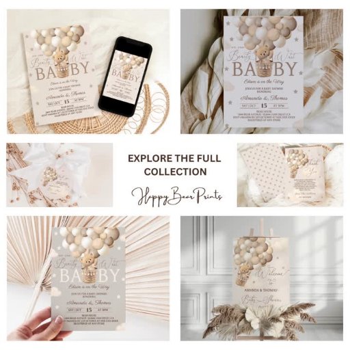 Teddy Bear heteluchtballon Thema genderneutraal baby shower matte of duidelijke acryl uitnodiging. Bijpassende items beschikbaar, vriendelijk bericht via zazzle.