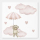 Waterverf beer met een blozende roze paraplu zweeft omhoog in de wolken met harten voor baby meisje kwekerij.