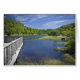 Een fotografisch afbeelding van de kleine plattelandsgemeenschap Beer River in de provincie Nova Scotia in Canada. Dit afbeelding heeft een blauw riviertje omgeven door groen moerasgras met een groen bos op de achtergrond en een levendige blauwe lucht met wat witte wolken. Op de voorgrond is er een wit dek dat zich uitstrekt in het water dat je ogen verdrinkt door het afbeelding. Dit afbeelding geeft een gevoel van rust, rust en sereniteit. Het gevoel van terug naar natuur en ontspanning.