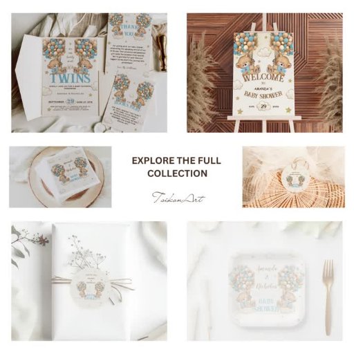 Teddy Bear thema Twin boys Baby shower dank u stickers, met de liefste beren hoog zweven met schattige heteluchtballonnen! Dit ontwerp is perfect om de komst van tweelingjongens te vieren. Schattigee teddyberen met blauwe strikken houden blauwe en beige ballonnen vast. 💙 💙 Vergeet niet om het volledige collectie te verkennen!