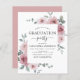 Begroting 2023 Stusty Roos Pink Floral Rozen en Eucalyptus Botanical Greenery Waterverf Spring of Summer Class of 2023 Graduation Party Invitations - bevat mooie en elegante scripttypografie met moderne botanische bloemen en groen voor de speciale Afstuderen "Word"-viering voor een Afstudeerder van de middelbare school of de universiteit.