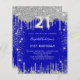 Een moderne, stijlvolle en glamoureuze uitnodiging voor een 21ste verjaardagsfeestje. Een koninklijke blauwe achtergrond, versierd met faux zilveren glitterstof. Personaliseer en voeg jouw naam en partijdetails toe. Nummer 21 wordt geschreven met een ballonstijllettertype, script.