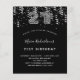 Een moderne, stijlvolle en glamoureuze uitnodiging voor een 21ste verjaardagsfeestje. Een zwarte achtergrond, versierd met zilveren confetti. De naam wordt geschreven met een modern handgeschreven stijlmanuscript met letters. Pas je partijgegevens aan en voeg deze toe. Nummer 21 wordt geschreven met een trendy ballonstijldoopvont, luipspatroon.