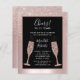 Op de achtergrond van de wazige roze metalen folie, biedt onze 21e uitnodiging van de Birthday party een vrouwelijk, ongekend glitter ombre ontwerp met een champagnebril die de 21e verjaardag kan uitzenden. In een zwart lijst met een gouden grens van het roos, zult u voorbeeldtekst vinden die u op de verpersoonlijkingssjabloon kunt gemakkelijk herzien.