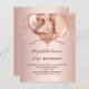 Voor een elegante 21e verjaardag. Een roos gouden faux metallische achtergrond. Gedecorreerd met roos goud, roze faux glitterdruppels, verfdruppelende blik en ballonnen. Pas een naam, en partijdetails aan en voeg deze toe. De naam wordt geschreven met een handgeschreven stijlmanuscript, aantal 21 met de doopvonten van de ballonstijl.