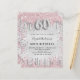 Een moderne, stijlvolle en glamoureuze uitnodiging voor een 60ste verjaardagsfeestje. Een faux zilverachtige achtergrond, versierd met roze en faux zilveren glitterstof. Personaliseer en voeg jouw naam en partijdetails toe. Aantal 60 wordt geschreven met een doopvont van de ballonstijl, manuscript.