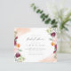 Deze bloemetjesbruiddoucheuitnodiging is perfect voor elk moment van het jaar! Met waterverf bloemen in wazige roze en bruine rode tinten met botanische groen op de hoeken boven op een waterverf. Het "Vrijgezellenfeest"wordt getoond in een modern manuscript calligrafiedoopvont en uw details in minimalistische typografie. Op de achterkant is er een marineblauwe waterverf achtergrond. Als onderdeel van de begrotingsselectie hier op Zazzle, komen deze uitnodigingen in beperkte omvang en in papiervoorraden. Als u een andere grootte of papiervoorraad nodig hebt, kan dit ontwerp worden overgebracht naar een standaard 5x7 formaat met het gereedschap voor de overdracht van het ontwerp voor meer opties.