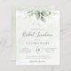 Mooie bruidmakreeluitnodiging met waterverf eucalyptus en goudbladeren.