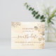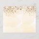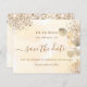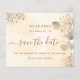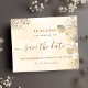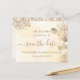Een gouden watergekleurde achtergrond met gouden eucalyptusbladeringen en smeltkroes glitterstof. Pas de datum, plaats en namen aan en voeg deze toe. Gulden gekleurde letters. De tekst: Sparen de Datum wordt geschreven met een groot trendy hand lettered stijlmanuscript.