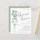 Een alternatief voor een budget van 4,5 x 5,6-inch halfglanzend gewicht van 110 lbs, dat even dik is als een briefkaart (maar niet geschikt om als briefkaart te worden gebruikt). NEEM OP DAT ER ÉÉN uitnodiging per blad is. Eucalyptus Rehearsal Dinner Invitation Dit moderne ontwerp heeft eucalyptusbladeren naar de linkerkant en met informeel setscript voor Rehearsal Dinner. De rest van de typografie kunt u gemakkelijk personaliseren. U kunt tekst en achtergrondkleuren aan beide zijden ook wijzigen als u dit wenst via de optie Verdere aanpassing.