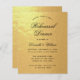 Een zwarte en gouden uitnodiging voor een repetitief diner met alleen zwarte tekst op de achtergrond van namaak-gouden folie. De woorden "Dinner van de repetitie"en de naam worden geschreven in een elegant kalligrafisch manuscript.
