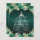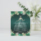 Floral Emerald Green Princess Gown Dress Glitter Sparkle 15th Birthday Quinceanera Bilingual Spain Invitation