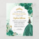 Floral Emerald Green Princess Gown Dress Glitter Sparkle Tiara Crown Butterfly 15th Birthday BILINGUAL Spain Quinceanera Invitation