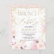 Zachte pastel, losse, florale waterverf, voordelige partij met weinig budget, brunch en bubbelig met handbeschilderd licht zacht pastelroze, geel, perzikbloemen, moderne en kische scriptkalligrafie en gouden glitter sparkles confetti, en een gouden elegant script.