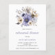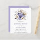 Een lagere prijs op papier van 4,5 x 5,6 inch. Enveloppen zijn een optionele extra. Bovenaan staat een boeket van prachtige lila, paarse en roomfloralen en -bladeren en een stijlvolle typografie, die gemakkelijk kan worden aangepast aan de details van uw repetitief diner. Een coördinerende lila achtergrond staat op de achterkant.