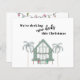 Begroting die nieuwe decks afbreekt, palms Holiday Moving Announcement... Het dek van een modern strandhuis is voorzien van festieve lampen en cadeaudozen, klaar voor de eerste kerst in je nieuwe huis. De palmbomen wijzen op de locatie van je nieuwe adres als in bijvoorbeeld Florida of een andere zuidelijke staat met stranden. De feestelijke groet voor deze betaalkaart zegt: "We decken deze kerst nieuwe dekken." Alle tekst op achterzijde van de kaart kan gemakkelijk worden herzien gebruikend het persoonlijke drop-down menu van de sjabloon.