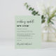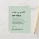 Budgetvriendelijke sage groene trouwverandering van de locatieaankondiging met "trouwupdate nieuwe locatie", geschreven in een mix van een stijlvol script en gewaagde trendy typografie (u kunt dit aanpassen aan "nieuwe datum", "kleinere bruiloft", enz.). Pas uw verandering van planbericht aan, voeg uw namen in een handtekeningsachtig manuscript toe en voeg uw trouwwebsite op de achterkant toe of verlaat leeg.